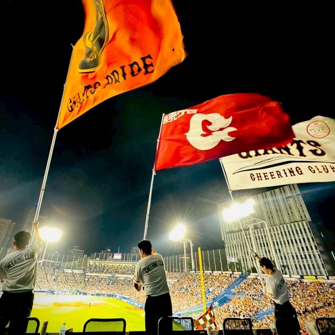 ⚪団旗 白地に「TOKYO GIANTS」の文字、そして本拠地東京ドームの屋根が描かれております。
